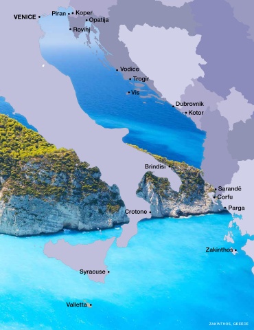 Piran Koper VENICE Opatija Rovinj Vodice Trogir Vis Dubrovnik Kotor Parga Brindisi Sarandë Corfu Parga Crotone Zakinthos Syracuse Valletta 43 LET US HELP PLAN YOUR SEABOURN VACATION EXPERIENCE BY CALLING 844.712.9754 ZAKINTHOS, GREECE