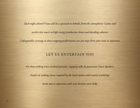 Each night aboard Vista will be a spectacle to behold, from the atmospheric Casino and