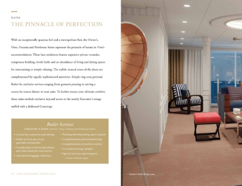 58 | VISTA INAUGURAL SEASON 2023 Owner’s Suite living room