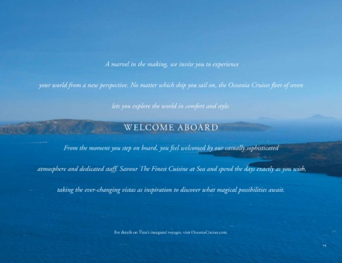 For details on Vista’s inaugural voyages, visit OceaniaCruises.com.