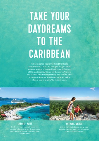 shores of Labadee, a private destination on waters and ancient ruins, Cozumel is ripe for Drive down the scenic roads of Montego Bay, hike can paddleboard on crystal clear water before