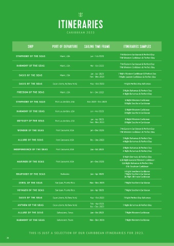 THIS IS JUST A SELECTION OF OUR CARIBBEAN ITINERARIES FOR 2023.