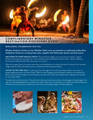 Celebration Festival on a lovely private motu, complete with Tahitian fire dancers and local cuisine.