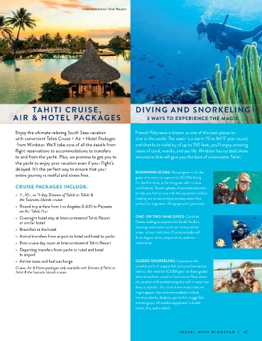with convenient Tahiti Cruise + Air + Hotel Packages dive in the world. The water is a warm 79 to 84°F year round,
