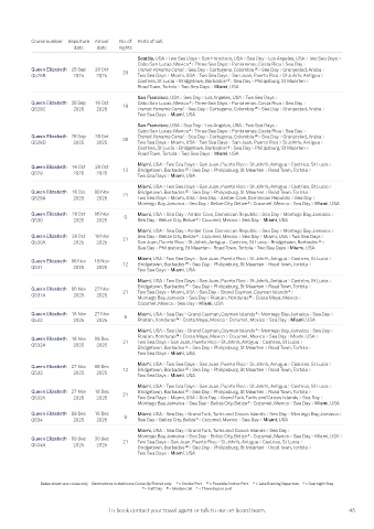Victoria, Canada > Seattle, USA Queen Elizabeth 16 Oct 28 Oct Miami, USA > Two Sea Days > San Juan, Puerto Rico > St John’s, Antigua > Castries, St Lucia >