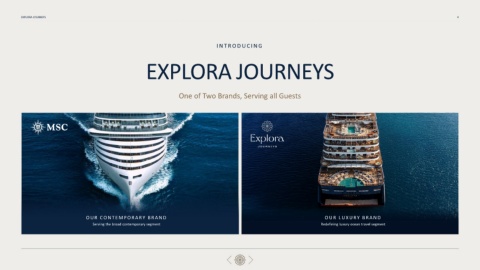 EXPLORA JOURNEYS 4 I N T R O D U C I N G EXPLORA JOURNEYS One of Two Brands, Serving all Guests OUR CONTEMPORARY BRAND OUR LUXURY BRAND Serving the broad contemporary segment Redefining luxury ocean travel segment